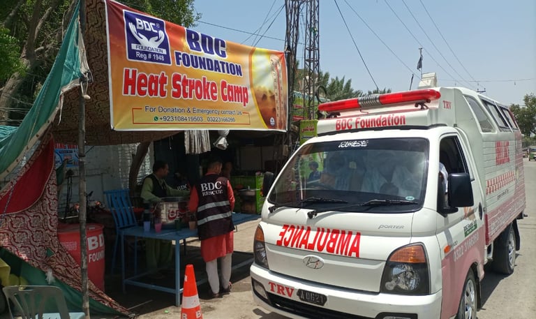 In partnership with BDC Foundation, we established heatstroke relief camps across Karachi and interior Sindh. These camps offer clean drinking water, shaded rest areas, and basic medical assistance, while also raising awareness about heat safety. Our goal is to protect vulnerable communities and reduce the risk of heat-related illnesses during extreme weather conditions.